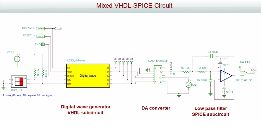 In addition to SPICE, TINA and TINACloud include 7 major Hardware Description Languages (VHDL, VHDL-AMS, Verilog, Verilog A&AMS, SystemVerilog, SystemC) for modeling modern, complex integrated circuits such as SAR and Sigma-Delta ADC, DAC converters with SPI, Digital power ICs with I2C and PM bus, and Digital filters.
