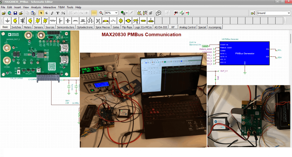 In conclusion, the MAX20830 DC‑DC converter can be accurately simulated in TINA. The PMBus communication circuit-including the output‑voltage‑change command and the device’s corresponding behavior-has been verified through measurements taken with the MAX20830EVKIT evaluation board.