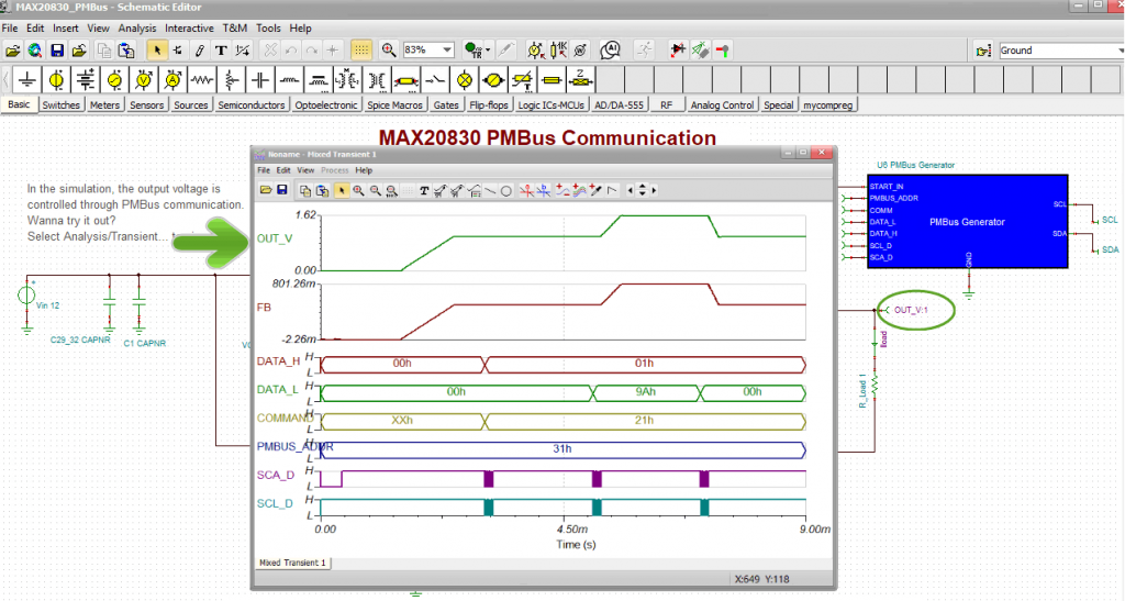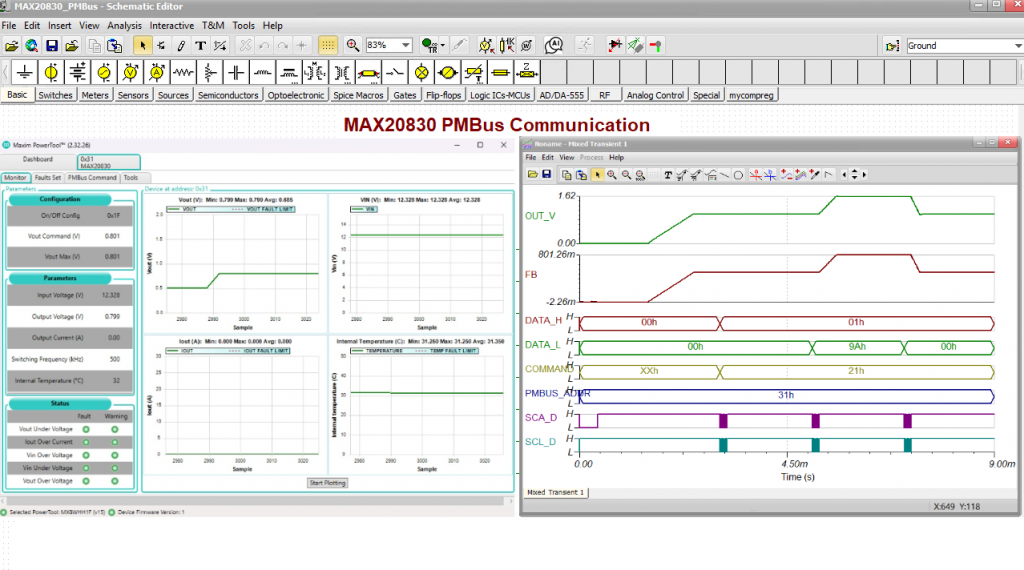 MAX20830 PMBus: Results of Maxim PowerTool and TINA simulation
