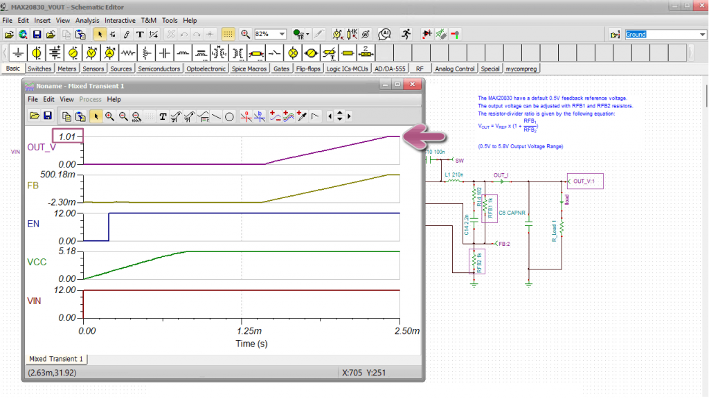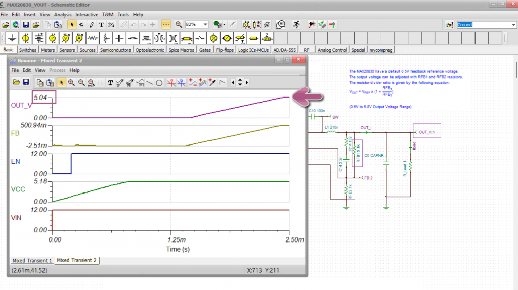 MAX20830 simulation with TINA: Running Transient Analysis
