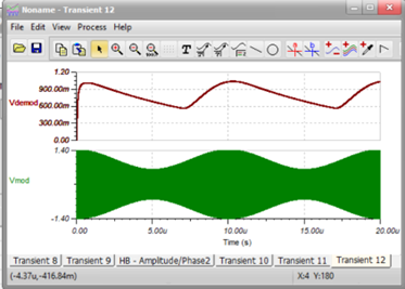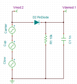 To illustrate this technique, open the AM Demodulator with PIN Diode.TSC circuit file from the Examples\RF\HB folder in TINA.