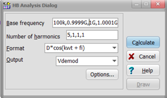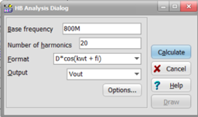 Select Harmonic Balance Analysis… from the Analysis menu. The HB Analysis Dialog appears.