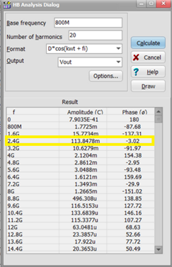 You can also display the spectrum lines graphically by clicking the Draw button in the Harmonic Balance Analysis dialog.