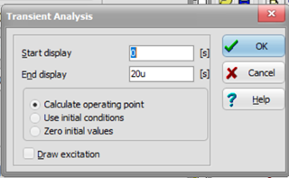Select Transient from the Analysis / Transient… menu. The Transient Analysis dialog appears.