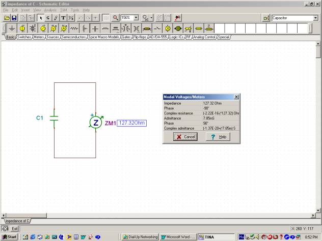To see the frequency dependence of the impedance of a capacitor, let’s use TINA as we did earlier with the inductor.