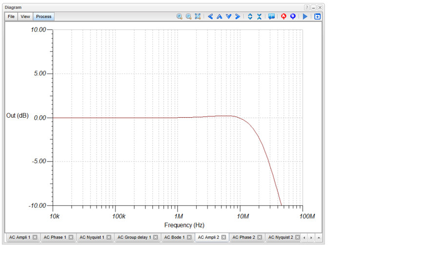 As shown on the diagram the target values (Gain 6db, Cut-off frequency 900Hz) have been reached.