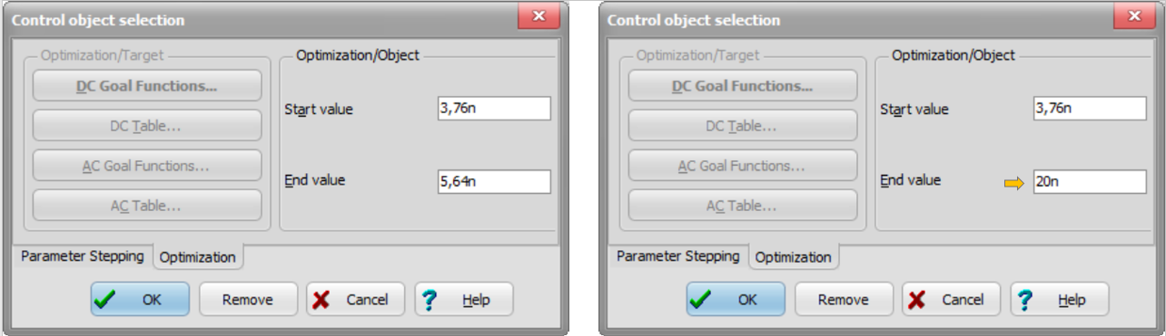 Next select the circuit parameters which you want to change to reach the Optimization targets.