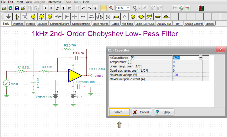 Another method of method of designing circuits in TINA and TINAcloud is using the built is Circuit Designer tool called simply Design Tool.