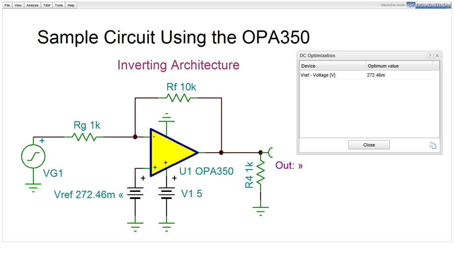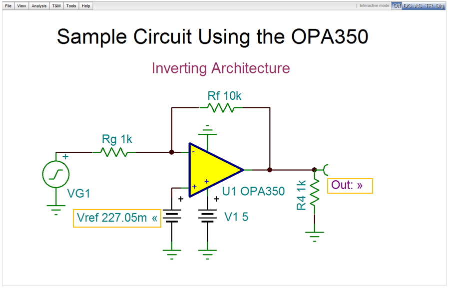 OPA350 Circuit Simulation with TINACloud