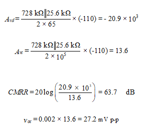 We find the double-ended output voltage in terms of the common-mode and differential-mode gain as follows: